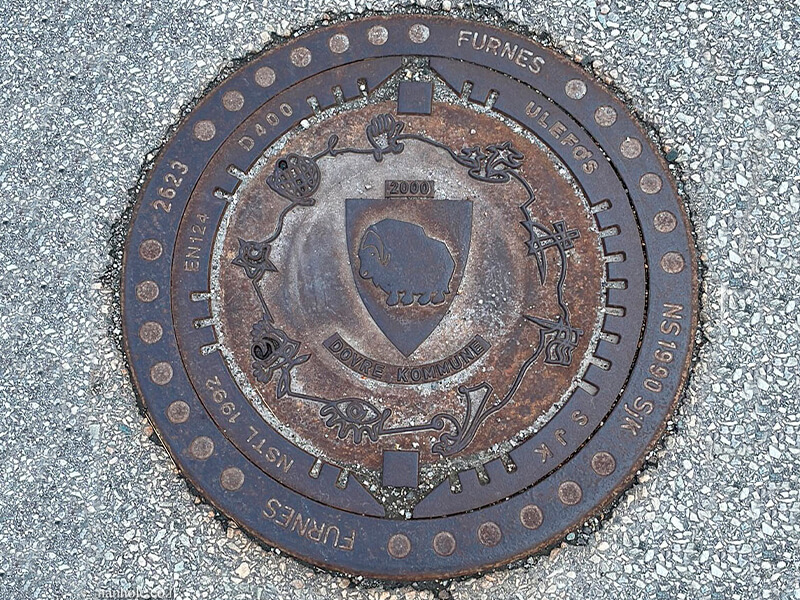 Еще один гербовый люк был обнаружен в небольшой деревеньке Домбос, расположенной в коммуне Довре, губерния Оппланн. В центре композиции находится герб коммуны, вокруг которого размещены элементы, связанные с этой территорией.